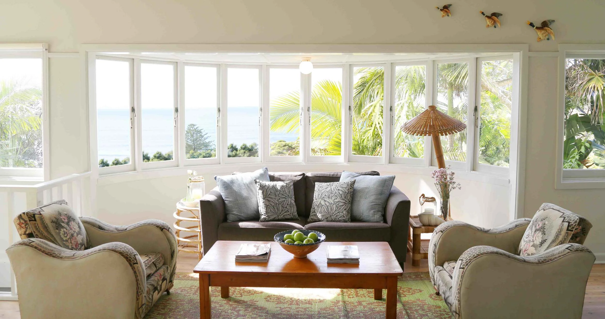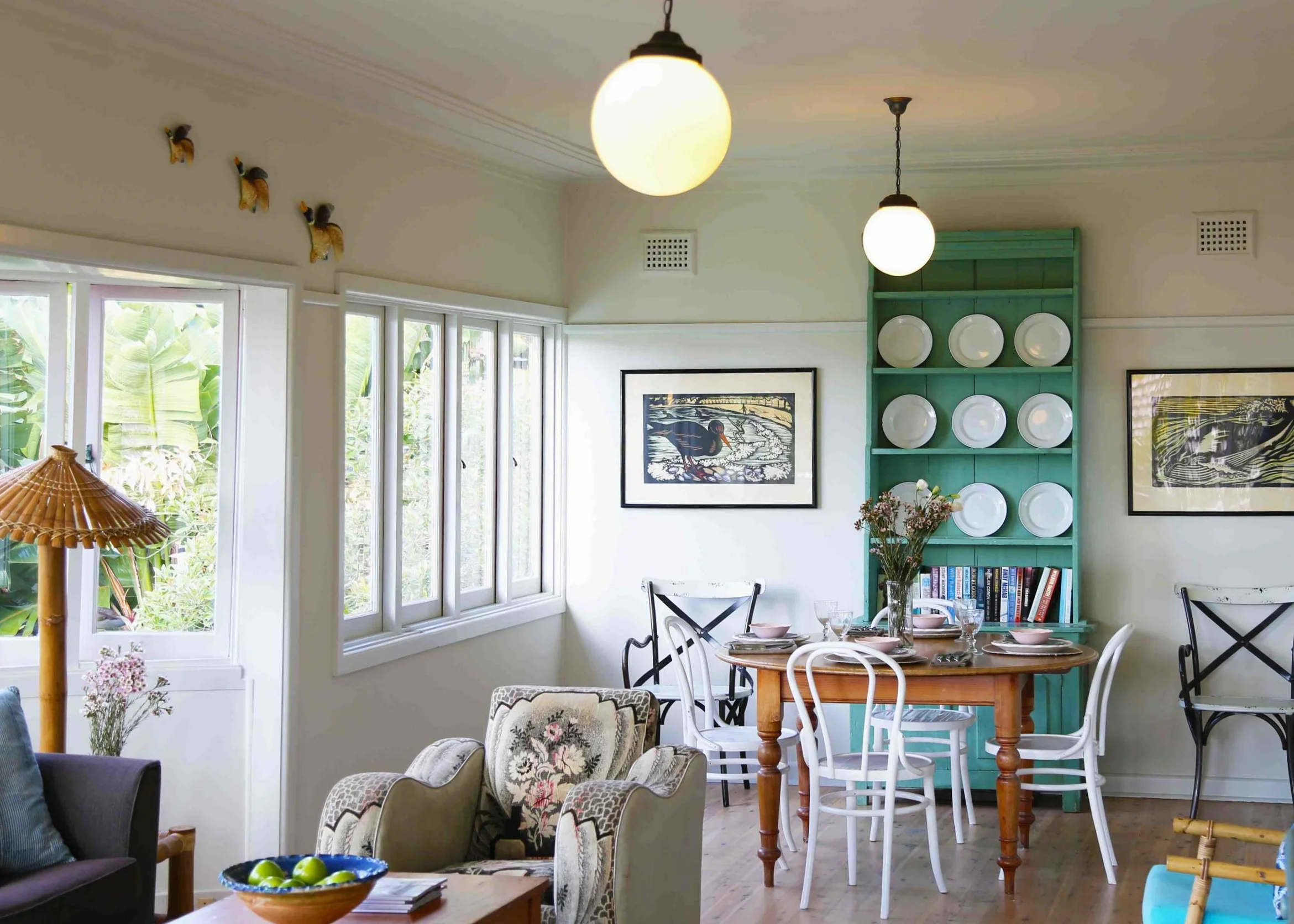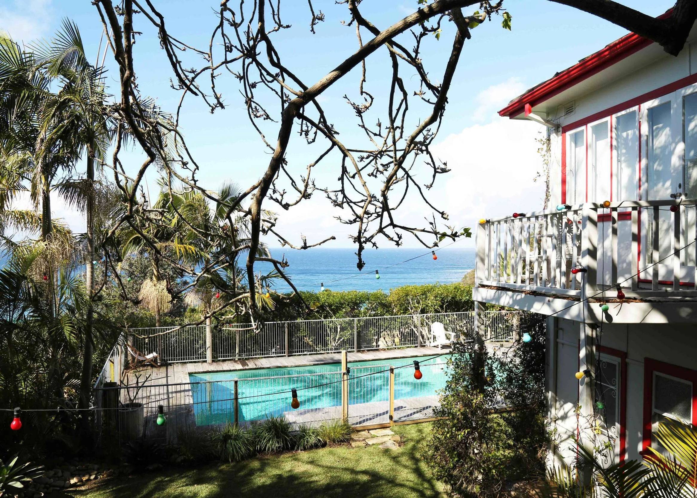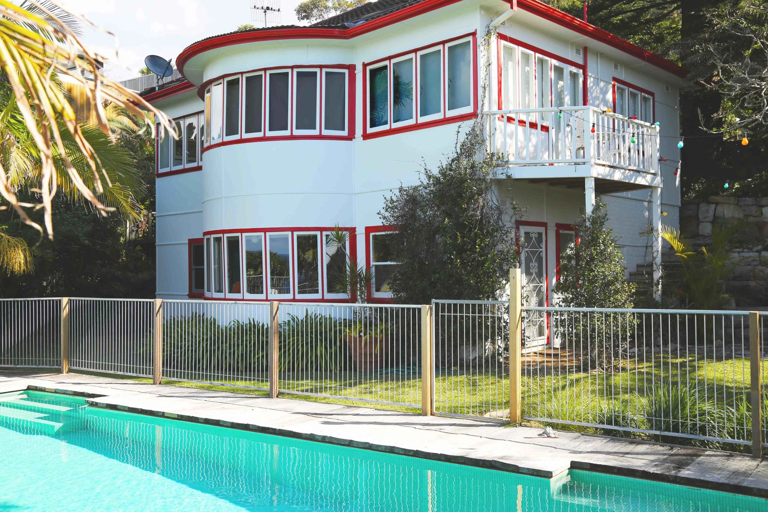 With uninterrupted views overlooking Whale Beach, this retro style beach house had not been changed since it was built in the 1950s. Today a turquoise pool with weather board hardwood sits in front of a vibrant red and white facade. Inside the interior scheme is true to its eccentric exterior by complimenting it with a vintage interior. A muted colour scheme allows the locally sourced reclaimed furniture pieces to take pride of place. Removing the window treatments to bring the outside view in, creates a vibrant focal point for the home.